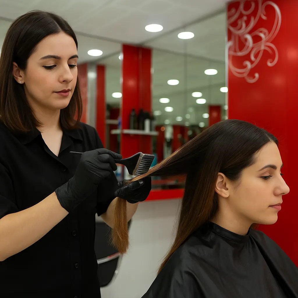 Es un servicio completo de coloración y estilismo capilar, que incluye el lavado, el corte profesional, la aplicación de tinte tradicional y el peinado final. Ideal para transformar por completo tu look en una sola sesión.